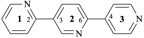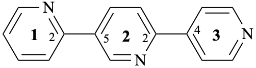 (not 12,23:26,34-terpyridine); the locant set 12,22,25,34 is lower than the locant set 12,23,26,34) 2,5′:2′,4′′-terpyridine (not 2,3′:6′,4′′-terpyridine the locant set 2,2′,5′,4′′ is lower than the locant set 2,6′,3′,4′′) | ||